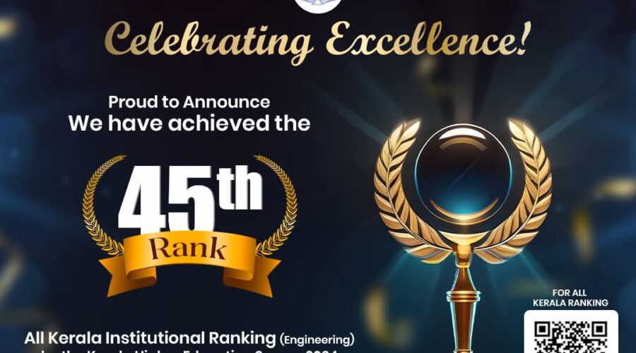 Celebrating Excellence! Proud to announce we’ve secured the 45th Rank in the All Kerala Institutional Ranking (Engineering) by the Kerala Higher Education Survey 2024!Read More