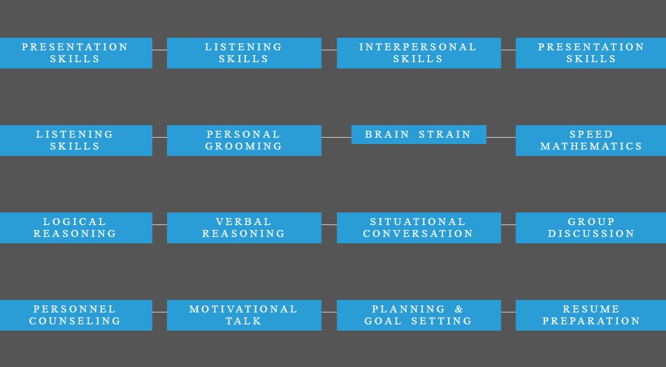 Our Placement and Training Cell offering Career Development Program for the students who are raring to enter the corporate world and introduce them to the prospective employers according to their aspirations and background. The Training programs have been formulated after a thorough analysis of unique requirement of various companies as the required skills will vary according to the company’s requirement. We impart this training program with the help of reputed training Institutes. They enable our students to gain a competitive edge in the recruitment process, groom their confidence and develop their personality.
