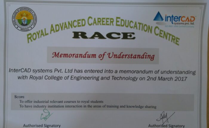 If students want to excel in their field, they should interact with a lot of people at all levels associated with Civil Engineering. There’s no learning better than learning from observation and questioning what student see around them. To keep them updated with latest developments and technologies, the Royal Advanced Career Education Center under Civil Engineering Department of RCET Providing various job oriented courses. This career education will also support the students in obtaining industry credentials.